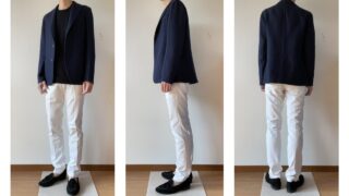 ジャケット:ALTEA オルテア ニットジャケットインナー:黒クルーネックニットパンツ:ストレッチ スリム スラックスシューズ:黒スェード タッセルローファー