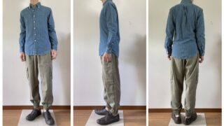 トップス:Ralph Lauren デニム BDシャツパンツ:Ralph Lauren 6P ジョガーパンツスニーカー:converse Jack Purcell ブラウン オールレザー